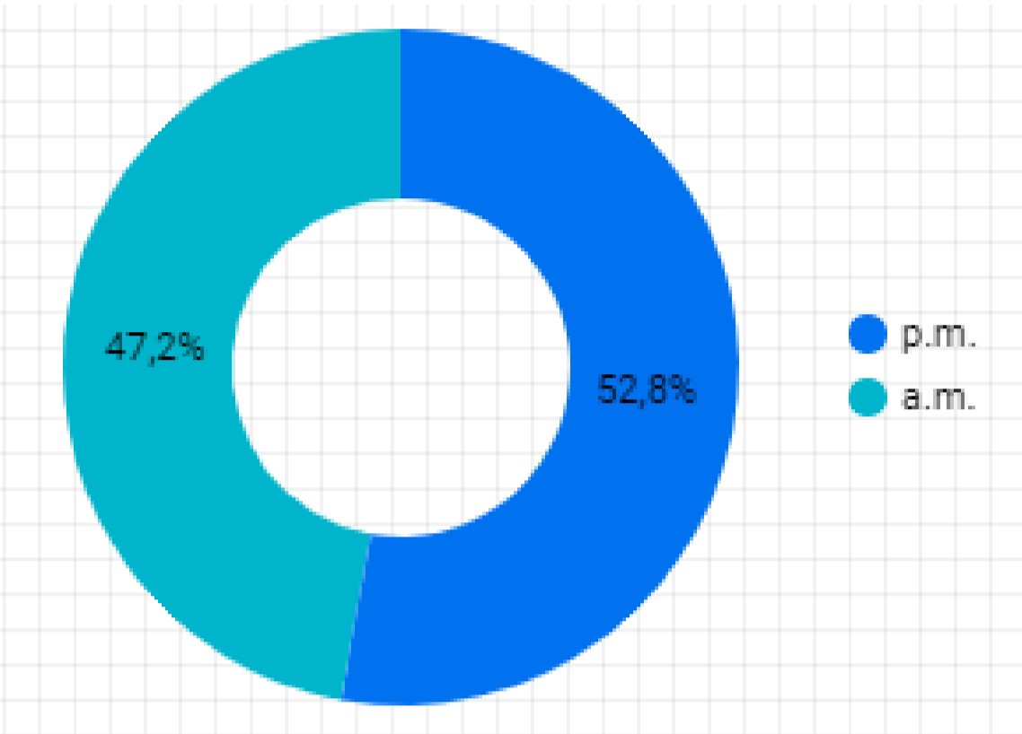 Conociendo las modalidades más empleadas en la ciudad se procedió a determinar cuál es la jornada en donde más casos se presentan, con el fin de contextualizar en qué momento se corre un mayor riesgo de ser víctima de alguno de estos delitos. A pesar de que existe una leve diferencia podemos considerar que la ciudad es más peligrosa en la noche como se ilustrará a continuación: